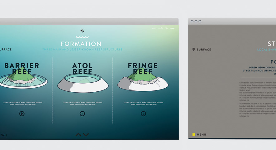 Overall there is a lack of awareness about oceans and coral reefs as habitats. And thus the aim of this project is to educate and bring awareness of corals, coral reefs as habitats and the impacts of human activity on reefs through interactive design.